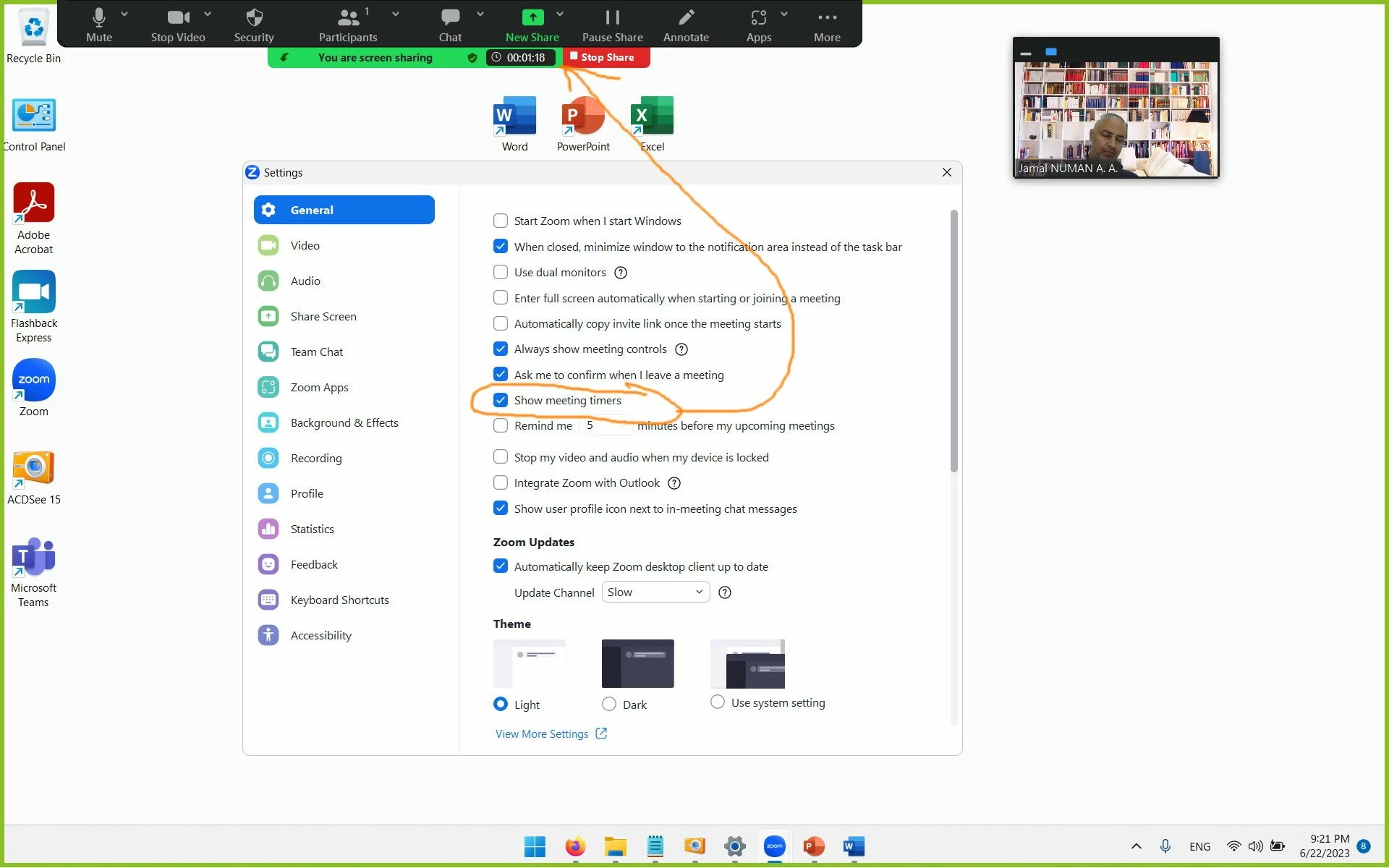 Zoom 5.14.2 (14578): How to show the timer for the recording on the toolbar while sharing a screen?