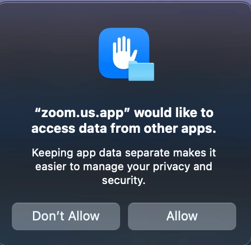 Zoom would like to access data from other apps - Macos Sonoma 14