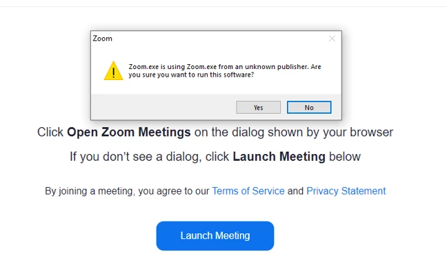 zoom.exe is using zoom.exe from an unknown publisher. are you want to run this software.