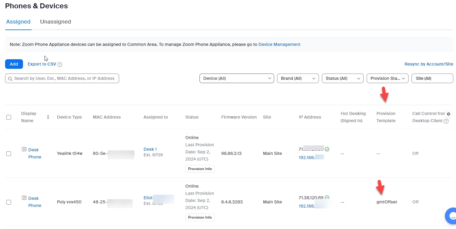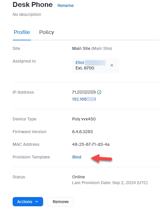 2. Apply the template to one or more poly desk phones. Suggest that you try the template on one phone first.