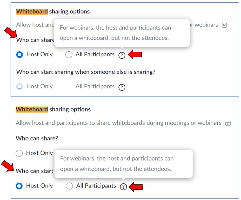 It also doesn't help that in Zoom's Portal Settings for Whiteboard sharing options, both options have the same information in the information popup.