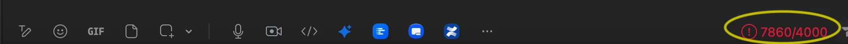 Hi -- I'm wondering if there is a character limit in the chat box? Some times I have around 800 characters in a passage I need to share with my group and a message appears saying 'message is too long". Thanks
