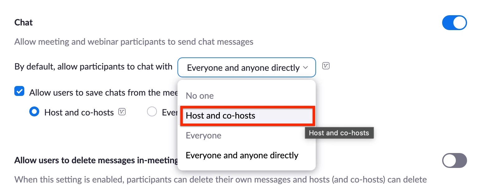 Hello, I want to turn off the chat save option for attendees. At the same time, I want to be able to save the chat for the host for reference after the event. Can this be done? If so, would you assist and thanks. Kathy