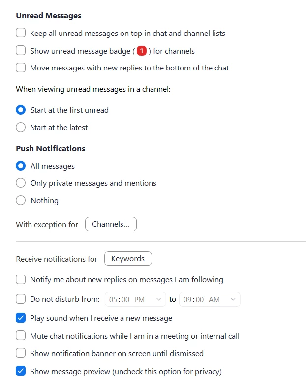 What I am experiencing is that I will hear an "ding" when a new chat message is received only if the zoom application isn't in the fore-front program (i.e. it is minimized to the tool bar area) and then only if the person sending the chat message isn't the "active" contact.  For me, zoom is a primary communication tool so the program is always active and open on a separate screen.  This means I only know if I have a new message is if I glance at it and see the red dot indicator for new messages. I wish it operated more similarly to outlook which makes an audible sound notification for any newly received email regardless of whether it is the active program or somewhere in the background. New message = audible notification...wish new chat also = audible notification...