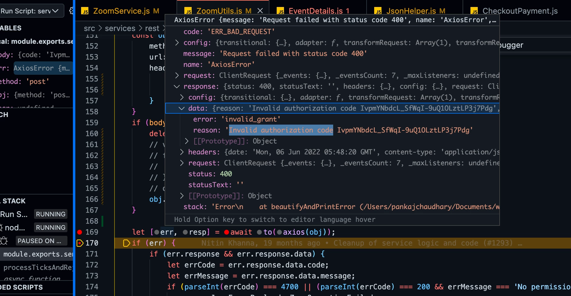 I am implementing the inApp Auth flow, after getting the code from "onAuthorized" method when I am trying to get the access token from zoom API, we are getting the "Invalid Authorization code" error.
