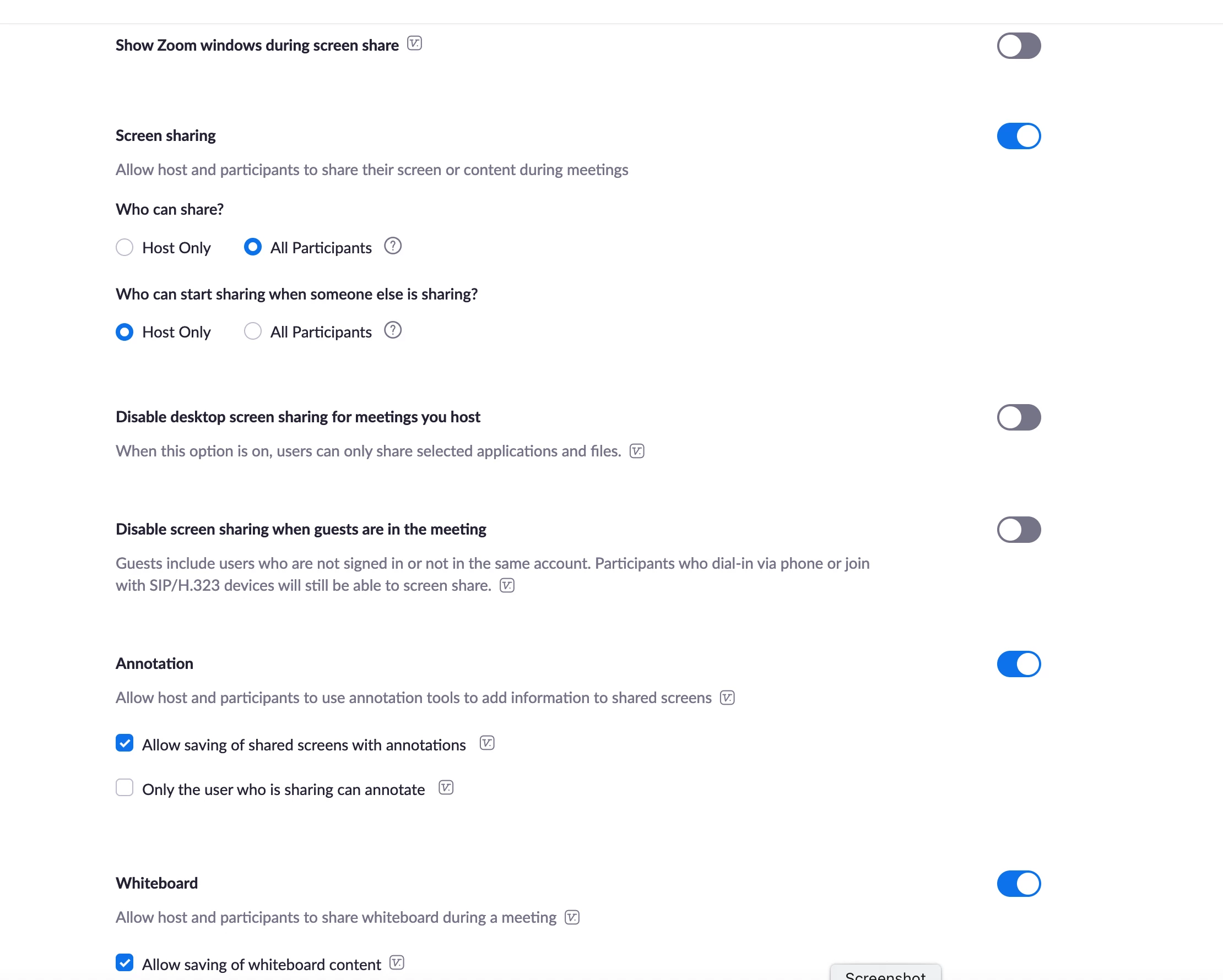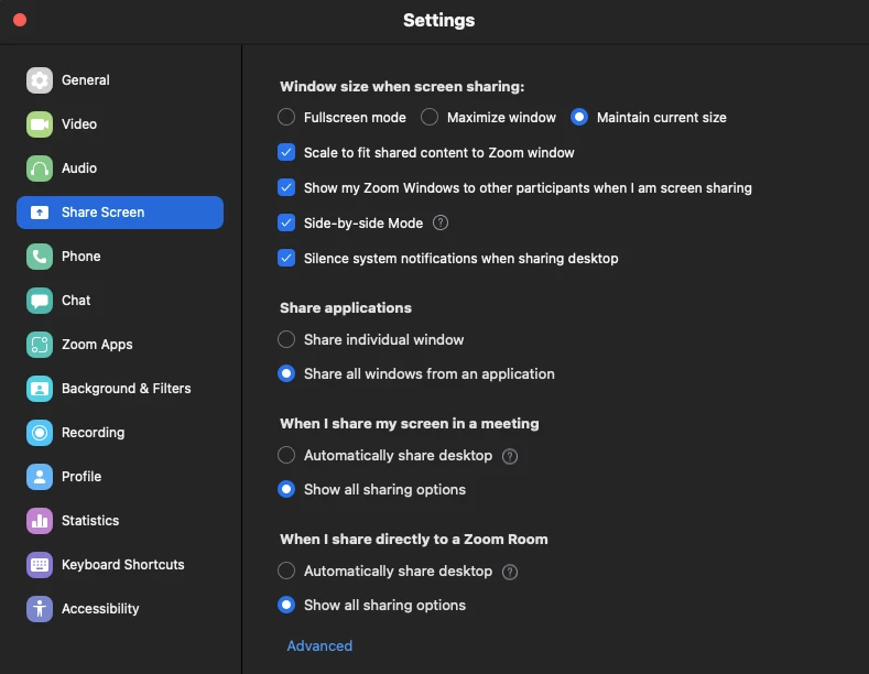 I have used zoom for a couple of years. I can share my desktop files on my laptop and office computer but I cannot share my desktop files on my home computer. I have updated and uninstalled and reinstalled and I still cannot share. Here is a screen shot of what I get. How do I fix this?