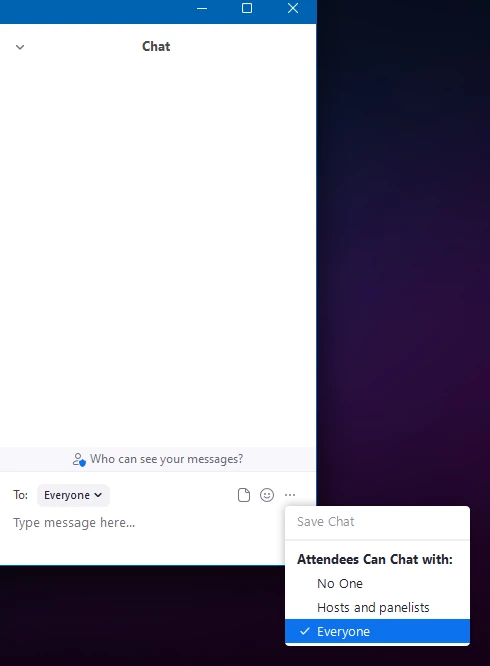 Is it possible to turn off chat for all webinars without turning it off for all meetings?