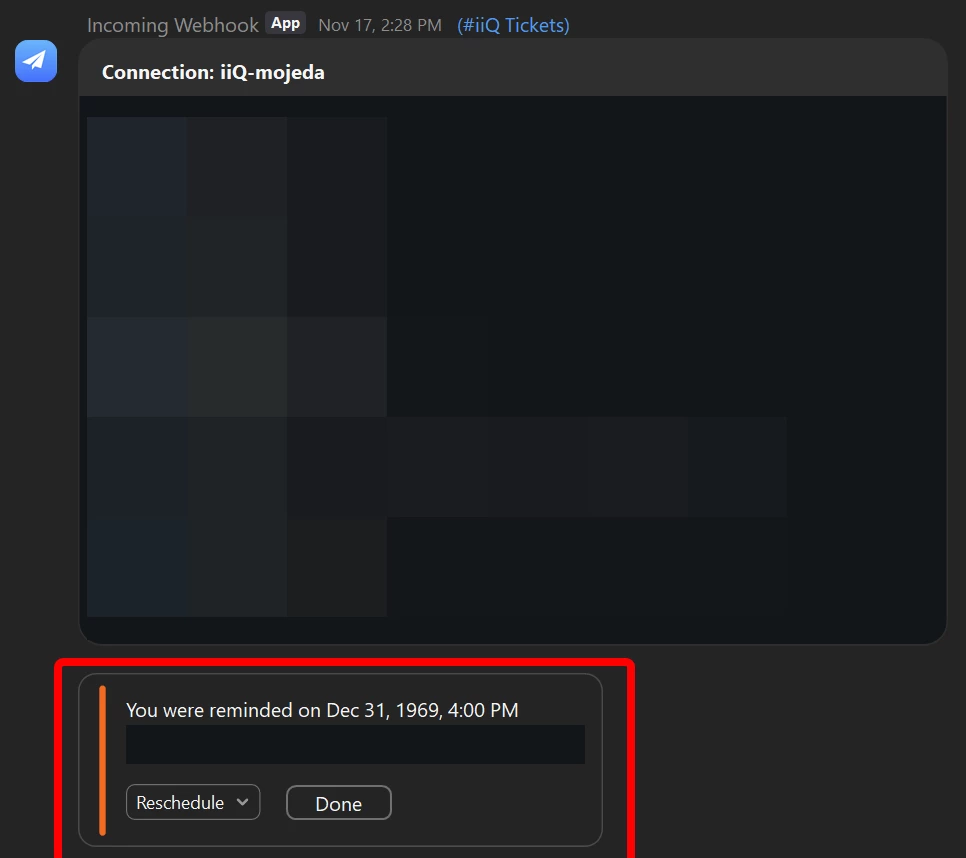 I've been using the remind feature for chat messages on messages coming in through the Incoming Webhook app, and while it works messages will randomly say I was reminded on December 1st, 1969 and I have to go back and reset the reminders which can be frustrating when I have 10+ reminders to have to fix, by then also having to go back and look up when I need to be reminded.