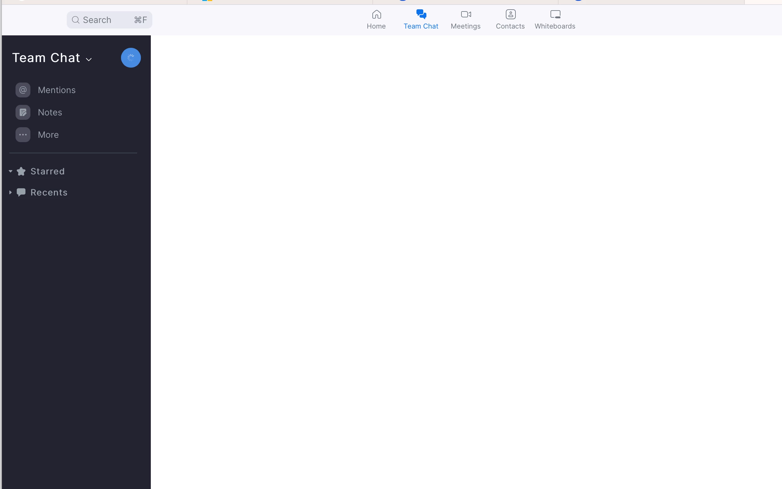 The Team Chat option in PWA Zoom (https://pwa.zoom.us/wc/team-chat) does not work - the "new chat" button has a loading icon, but it never actually loads. The "starred" and "recent" list of contacts never load.
