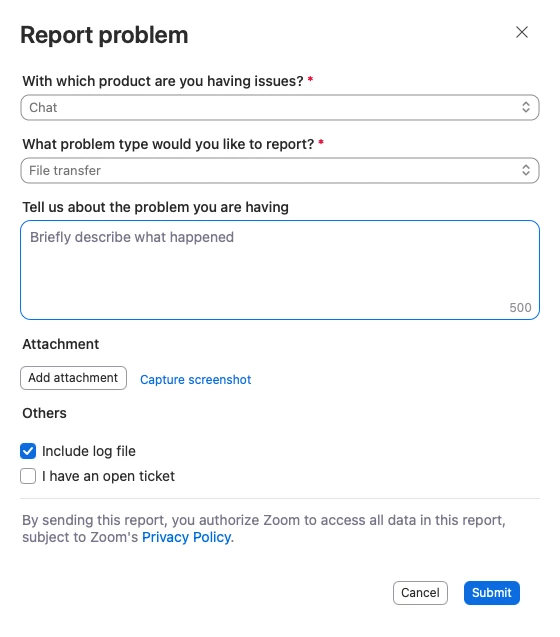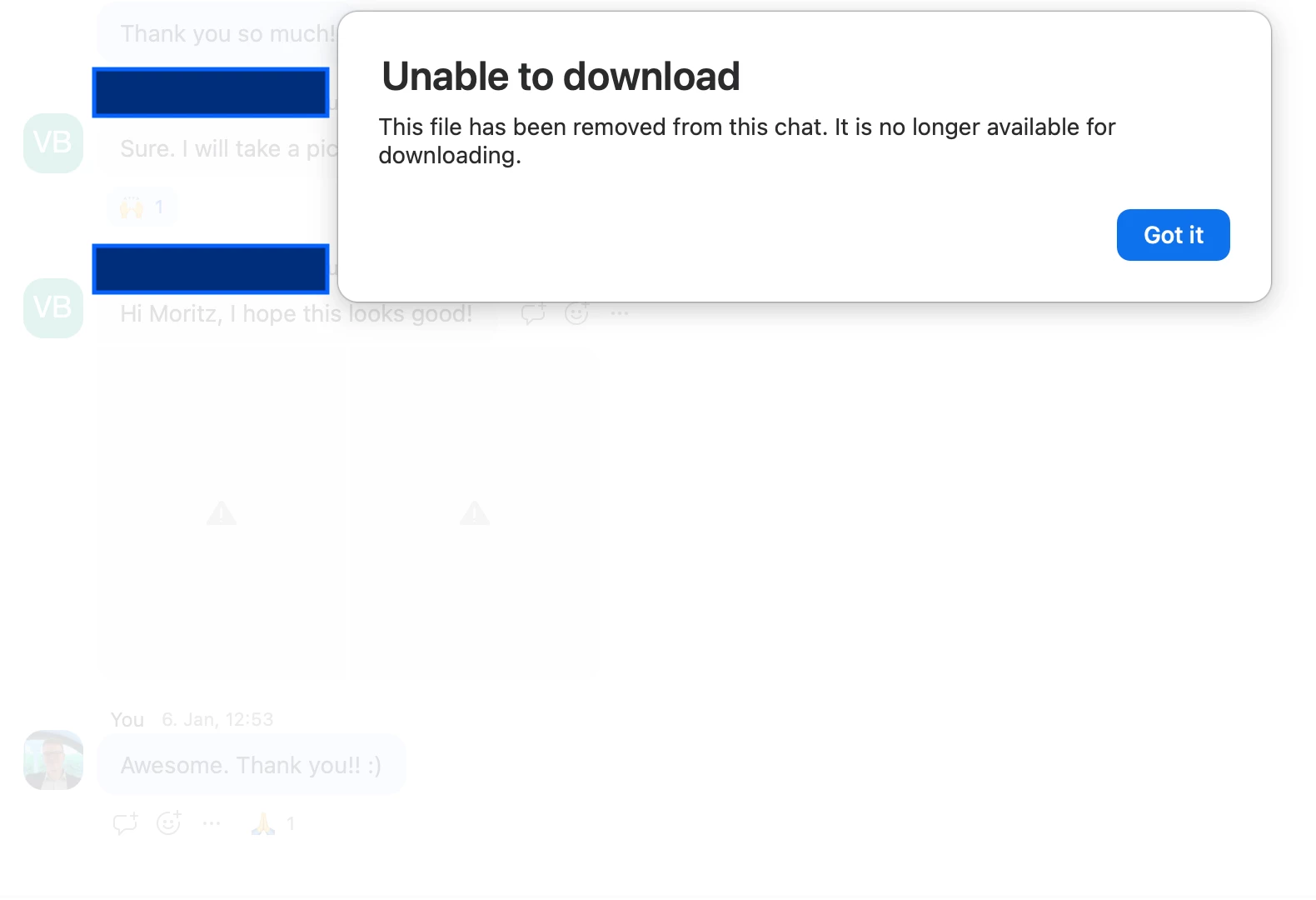 "Unable to download" assets in zoom chat