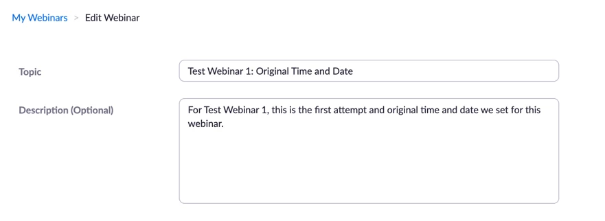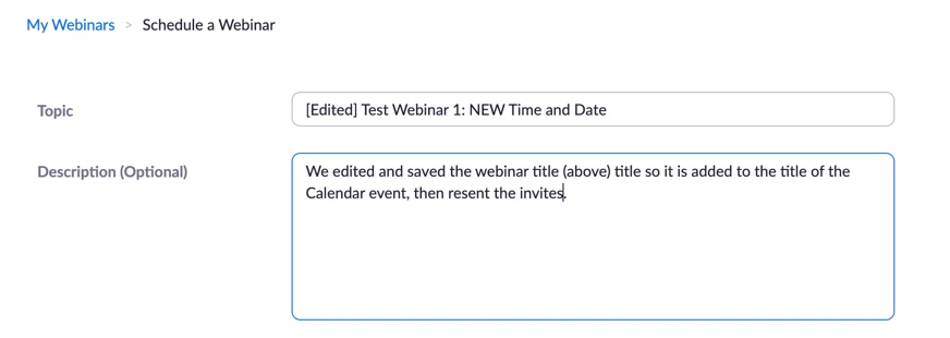 We have 2 different webinars and want to change the date and time. We want to mention that in Webinar Updated Notification Email. But what i see is there is default one setting only in zoom. is there a Way we can have different content / Subject line for both webinars when we notify users about the time change.