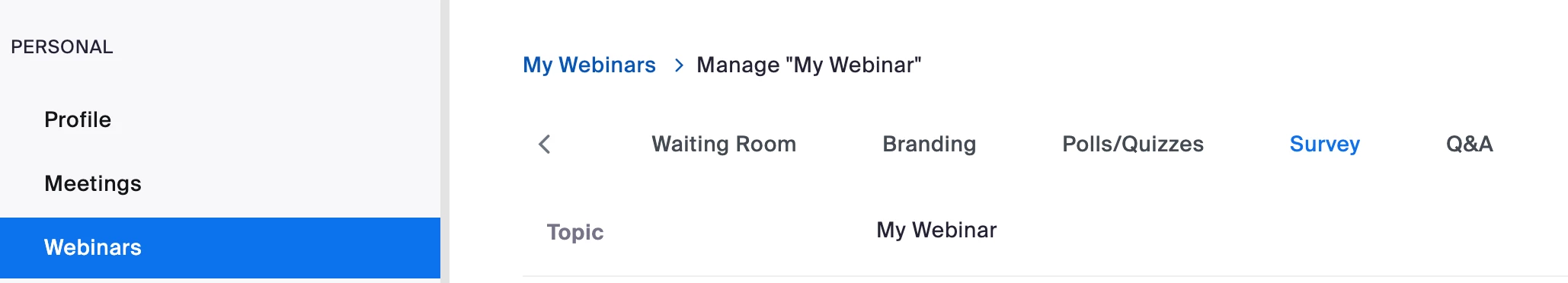 I created a general survey a while ago under the Survey tab on the Zoom menu. I now want to add this survey to a webinar template, but the only options I have in the webinar settings are to create a new survey from scratch or to add a third-party survey. Am I missing something somewhere, or is there not an option to do this?