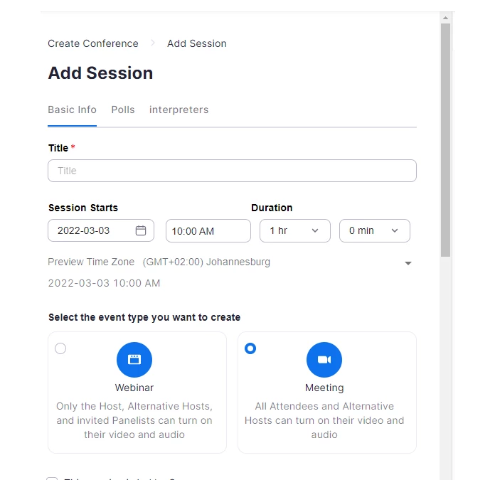 Hi. I'm new to Zoom Events and am currently setting up my first conference. Where do I add ticket tracks in the conference setup, as I can't add a session without it. Zoom support chat was unable to help.