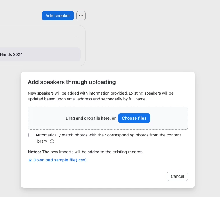 I'm using Zoom Sessions and I'd like to import my speakers into a session via a CSV file.