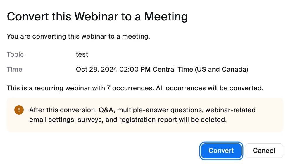 Converting Recurring Webinar to Meeting