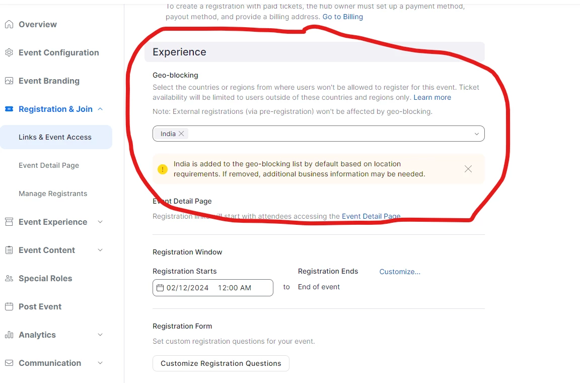 Created Zoom webinar through Zoom events platform trouble with India registering