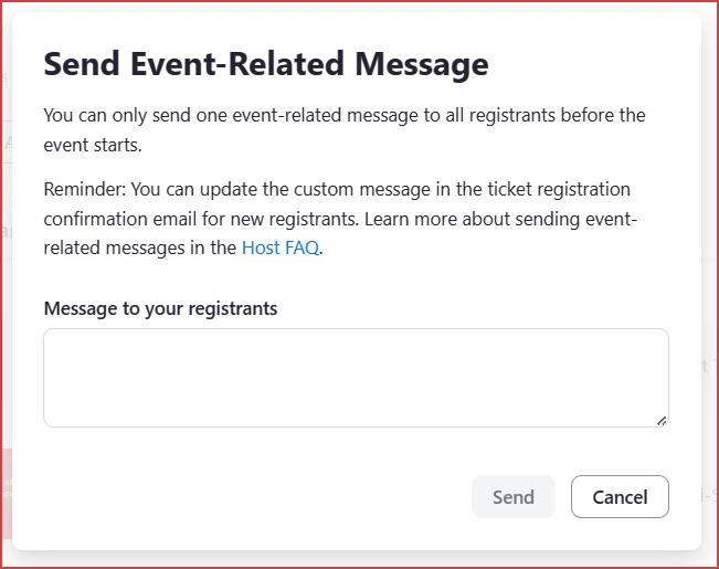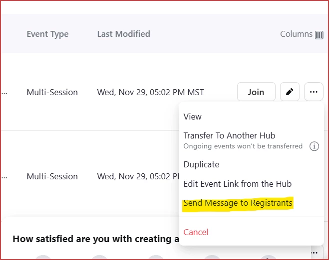 We are on Events, hosting a webinar series with multiple sessions. I know somewhere there is a function allowing you to send a direct notification to registrants - not the canned notifications, but a one time message. I know I have seen it somewhere, but now can't find it anywhere. Anyone?