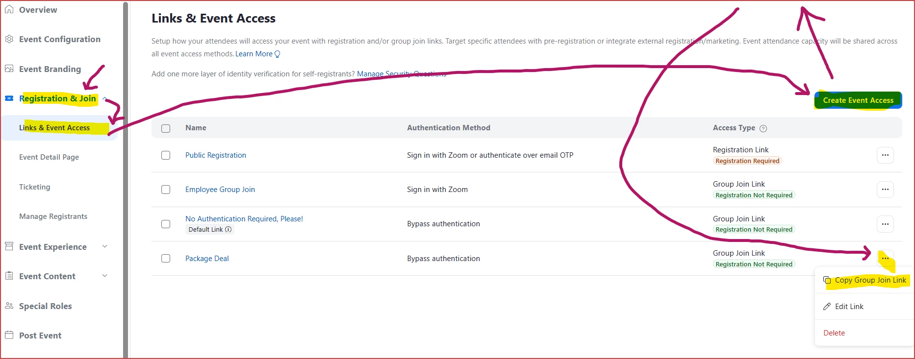 We are hosting an event for the general public that is paid. However, there is one group of people who we want to provide free access to the event and the recordings of it for the next year as a part of a package they have been sold. Is there a way for us to create a code that only they use which gives them free access? Or a link we can create which would allow them to attend live, as well as to see the recordings later?
