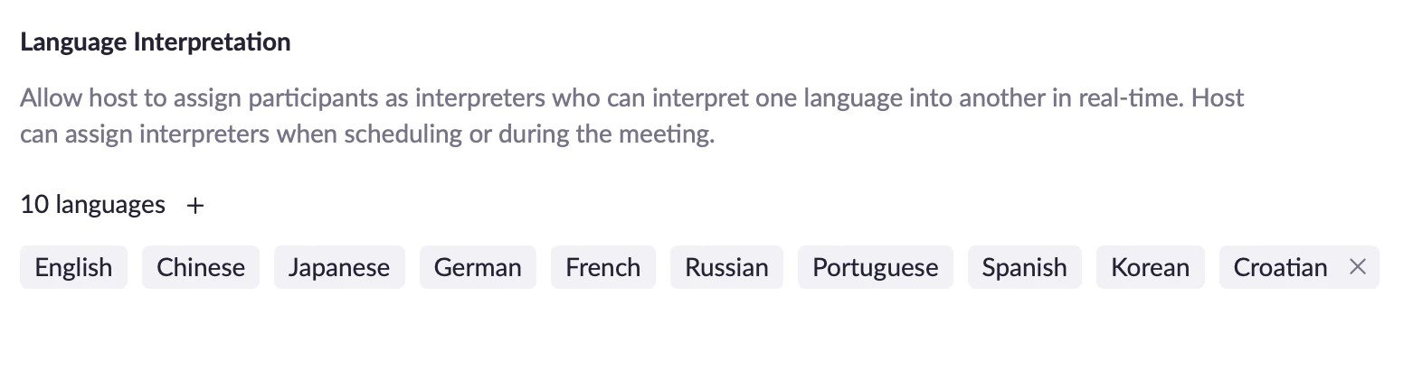 I added a new language inside ZOOM settings and it appears among the list on the website. However, when I schedule a new meeting and want to add the interpreter, the said language isn't present. Is there something that I'm missing? Thank you in advance.