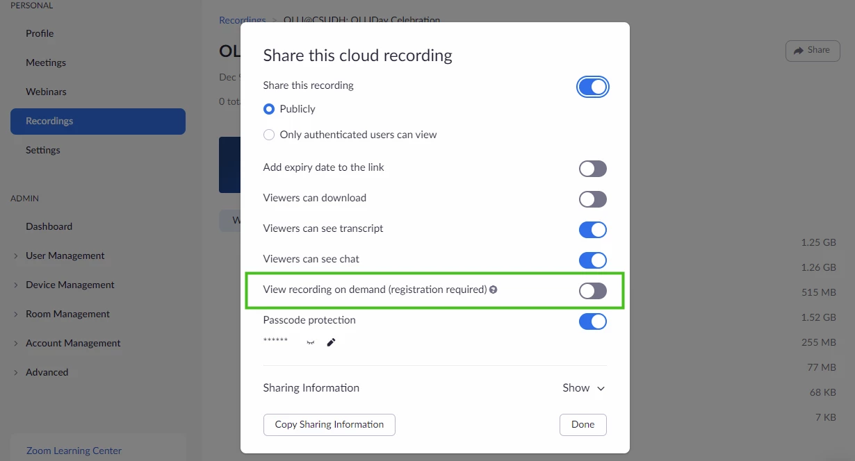 Limit Webinar Recordings Access To Emails in A List