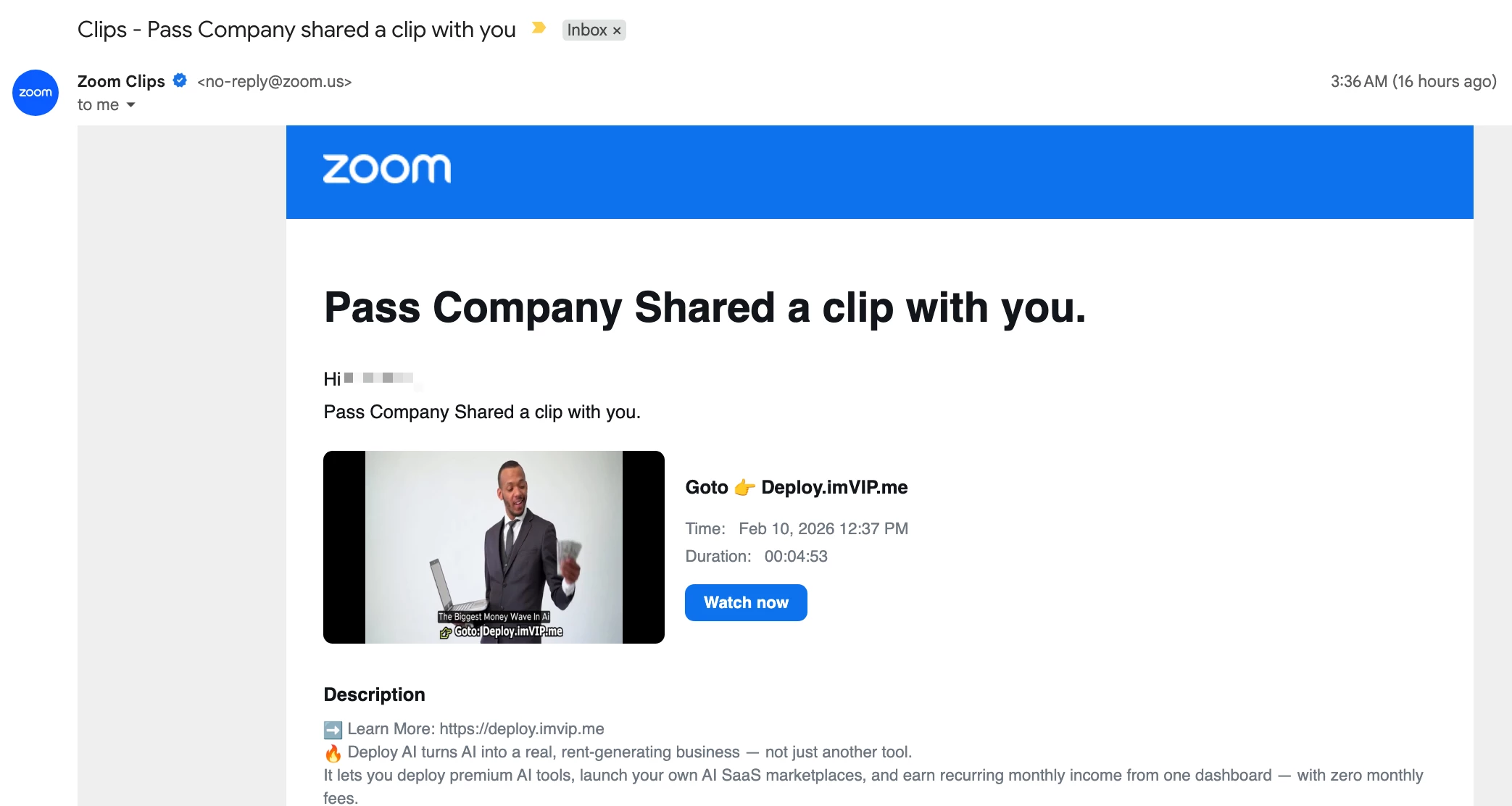 Just received a new email with latest spam technique - “Clips - XYZ Company shared a clip with you”