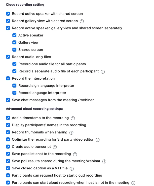 We're using zoom events to run a webinar and no matter what I have selected I can't access separate audio tracks.