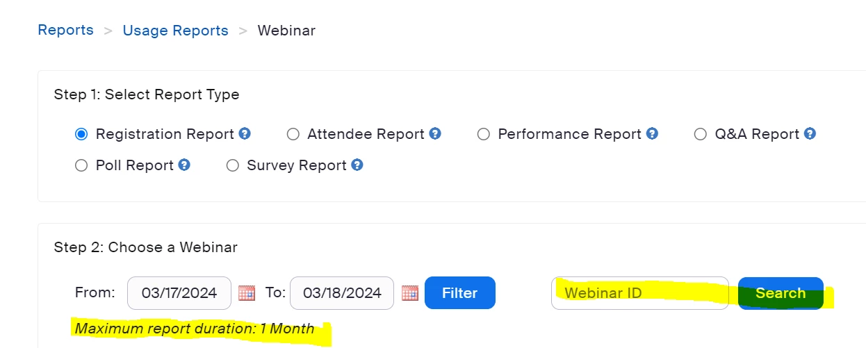 One month duration limit on reports in Zoom Webinars