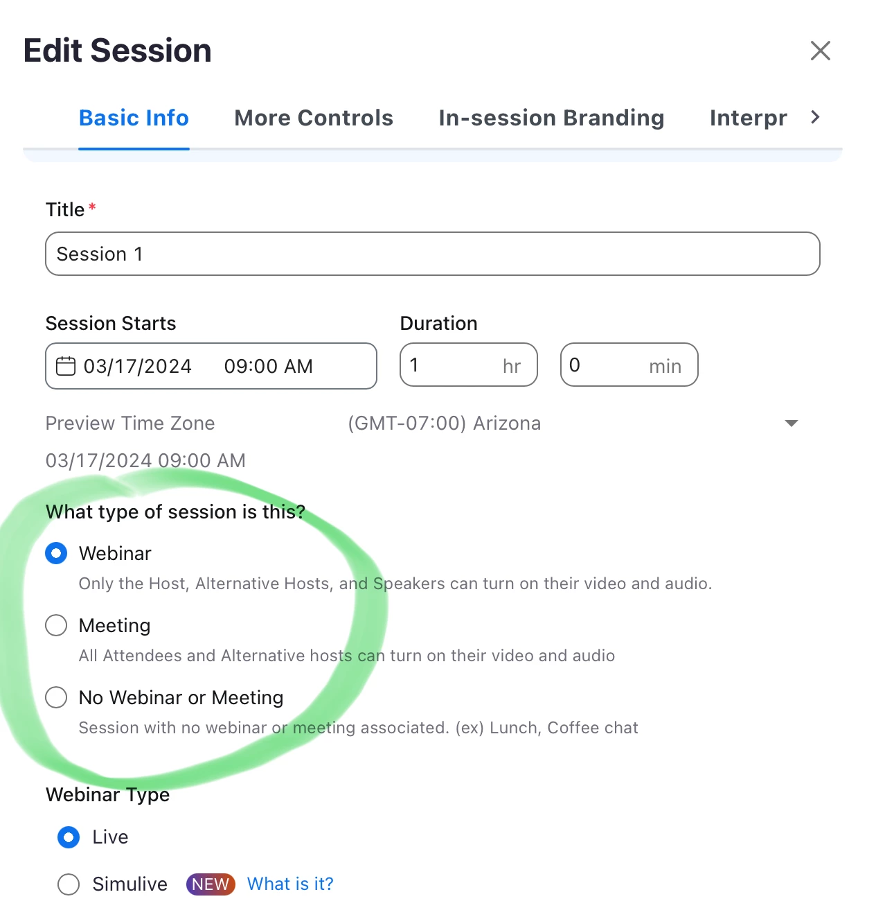 - My assumption is I need to convert my Event (meeting) to a Webinar