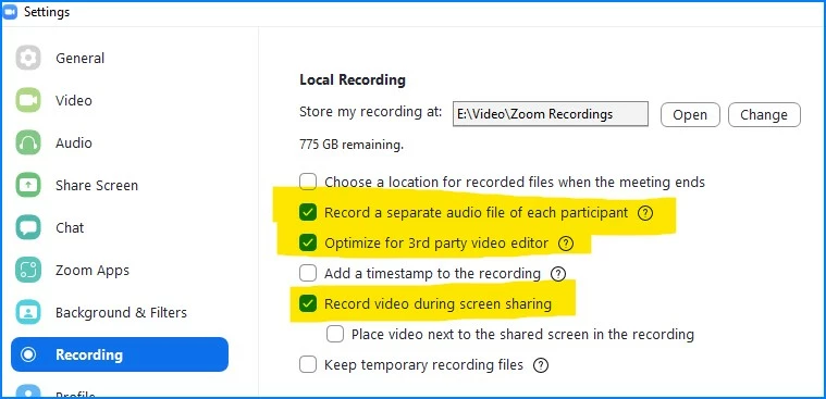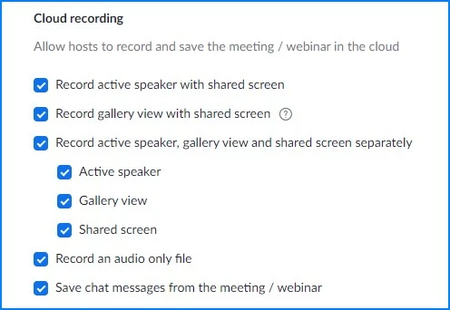 I'll elaborate- When screen sharing, only the shared screen and a SINGLE small video tile of the person speaking are recorded on the cloud "Shared screen with gallery view." This proves difficult when we want to capture a speaker + an ASL interpreter + the shared screen altogether in the recording.