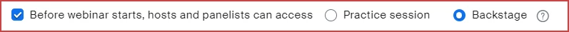 FYI, when this is enabled, you have the choice of having either "Practice Sessions" or "Backstage" when setting up a webinar.