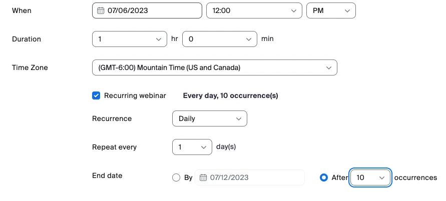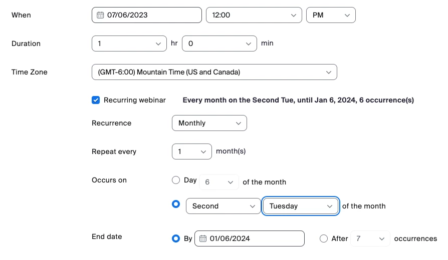Reoccuring webinar scheduling