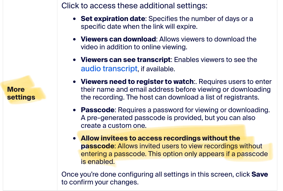 Hopefully your subject refers to sending recording links to others to view without requiring a passcode.  See this Zoom Support document: