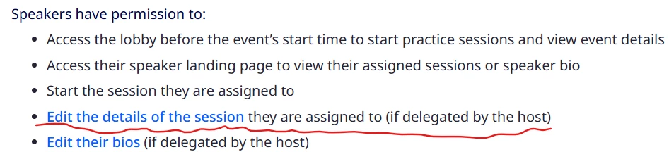 However, in a single session, my examination of session editing privileges shows that the session editor has only very limited privileges, such as adding shared content.
