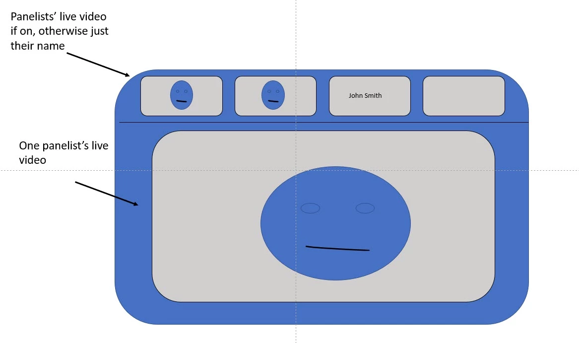 Ttfield98NewcomerForum|Forum|2 years agoFebruary 1, 2023QuestionShow all panelists in gallery with one largerForum|Forum|2 years agoFebruary 1, 20230 replies0 viewsIn a webinar, is it possible to have the panelists all visible with one of them larger, as attached?Our host would introduce a panelist and then they would "have the floor" for five or ten minutes.