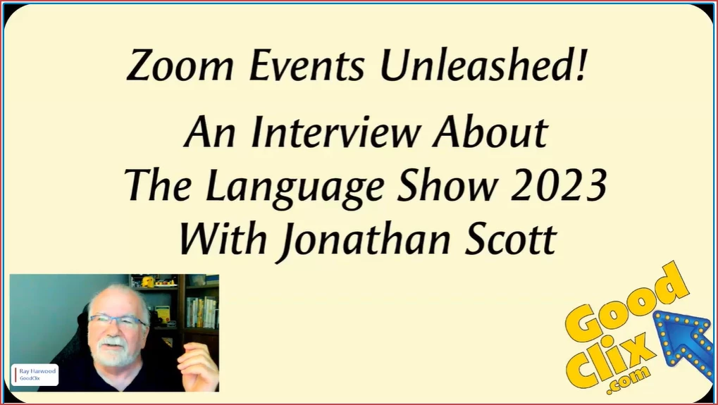Jonathan Scott (@jonathanscott) joined me along with panelists Denise Lahat (@DeniseLahat) and Anissa Barton-Thompson (@anissat) the day after Jonathan's 3-day Language Show 2023 ended. During the interview, Jonathan recounted his experience planning and executing with Zoom Events, including how his "Cry For Help" post in Denise’s Zoom Events Pros Facebook group ultimately got him the help he needed.