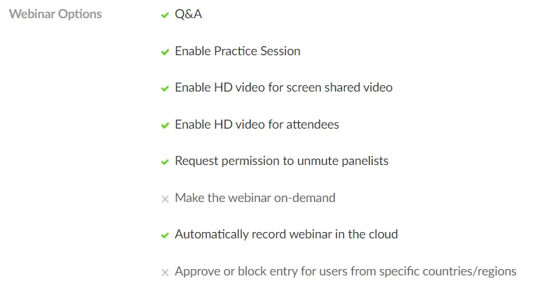 Webinar settings that used the template: