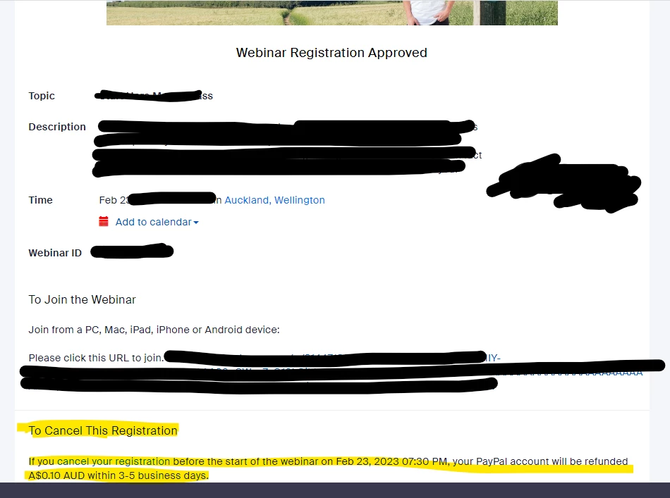 Hi, I am wanting to know if there is a way to remove this text from the webinar registration approved page (once the ticket sale has gone through). I have removed it from the confirmation email but would like it gone from here too.