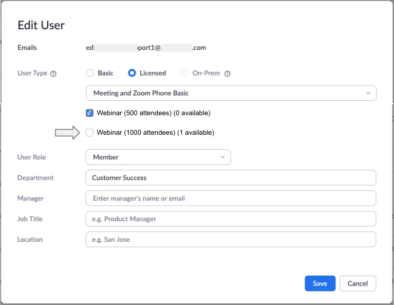 I have bought two plans in my zoom account. webinar with 500 attendees and another with 1000 attendees. when i schedule a webinar it schedules with the 500 attendees plan. How will i use the 1000 attendees plan?