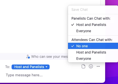 When I set the in-webinar chat to "attendances can chat with no one," does this restrict the hosts and panelists from sending chats to "hosts and panelists?" Or are only the attendees ever affected by these settings?