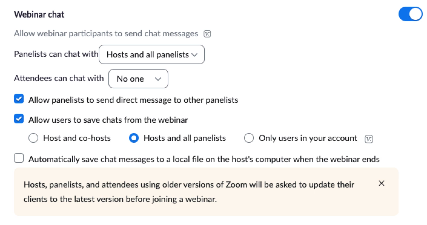 Webinar Chat Setting "No One"