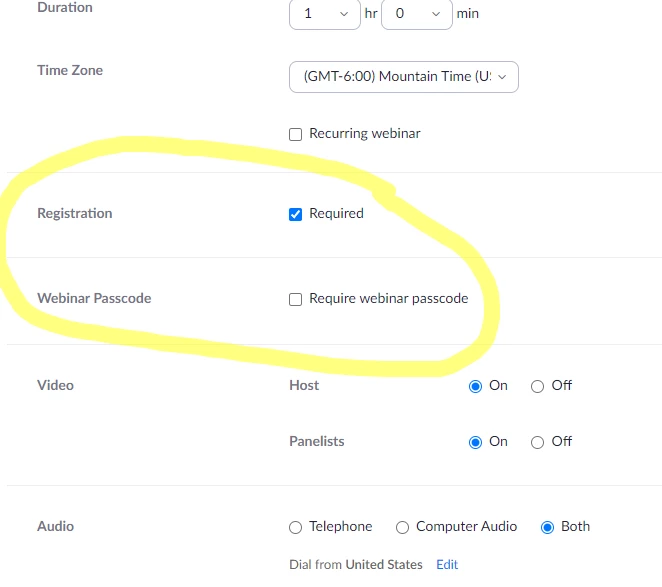 Webinar Passcode Unselected but Still Requiring Passcode
