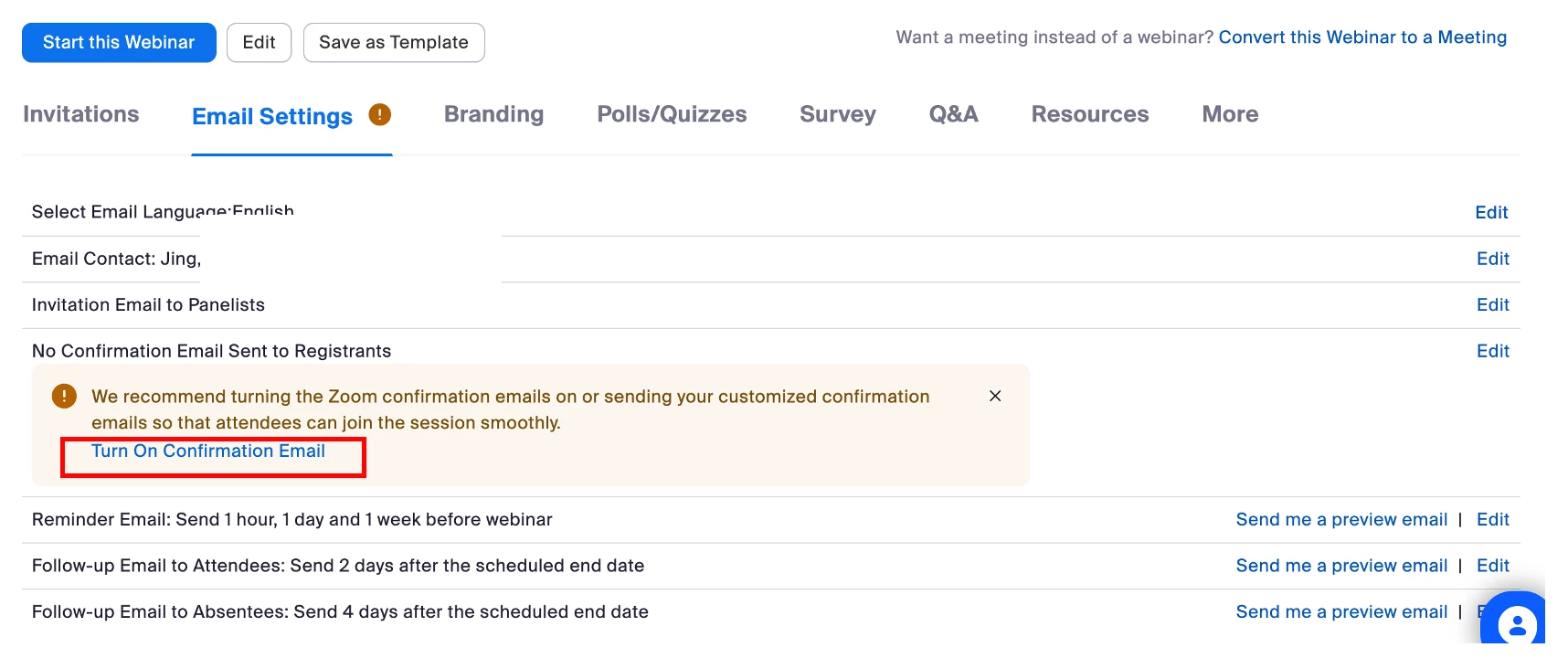 Then Zoom should send an email to the user, asking him/her to confirm the email