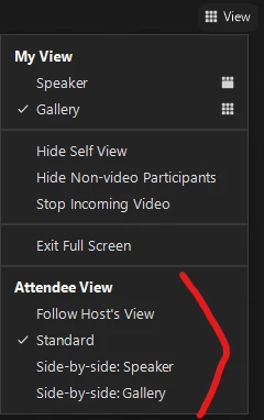 Participant View during Screen Share: Side by Side Gallery/Side by Side Speaker