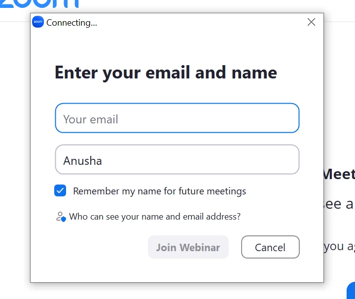 Is it possible to suppress this registration pop-up from appearing. If I'm on the Panellist I don't get prompted, but do if I'm an attendee to the Webinar. Obviously if I sign-up to Zoom, creating an account, then it bypasses me straight into the Webinar too.