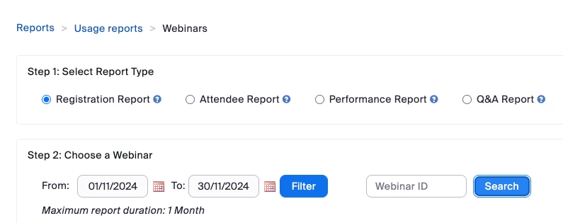Zooms definition of one month for webinar reporting purposes is INACCURATE. It says you can go back one month. Today is December 5th. I need to pull a webinar attendance report for November 15th. It doesn't show up. Zooms definition of one month appears to be 19 days