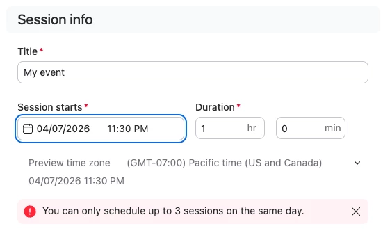 Limit of up to 3 session on the same day recurring sessions