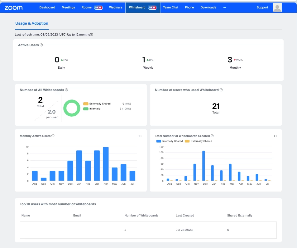 Zoom stats seem pretty limited. how can a zoom admin see use data for the different zoom tools - like Zoom's whiteboard?