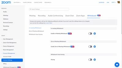 With 5.10.3, Whiteboards are turned on for all users. Is there a way to disable them at the account (web) level? I know they can be turned off in a meeting by unchecking Whiteboards in Security.