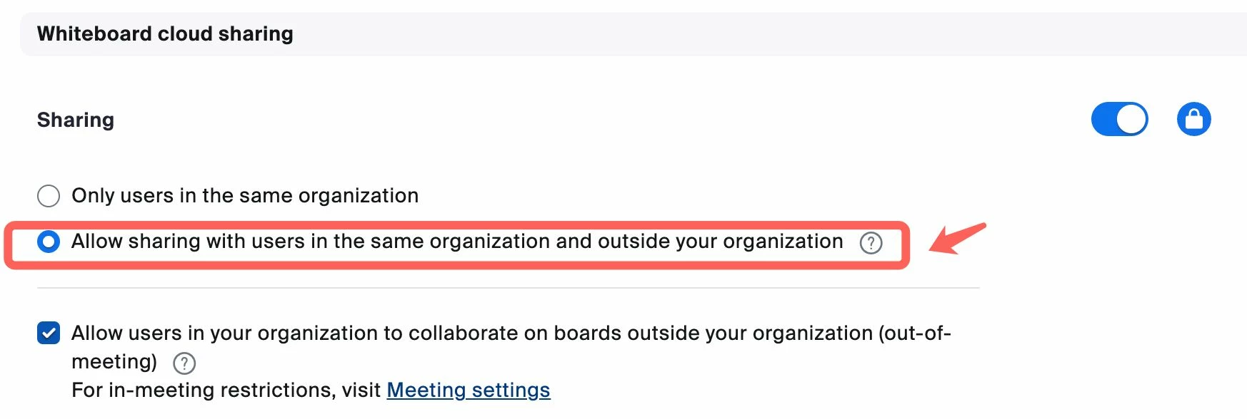 c'est a dire le proprietaire du tableau blanc autorise uniquement le partage avec les utilisateur de la meme organisation