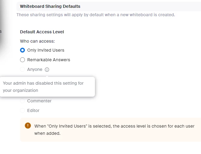 I am struggling to find away to invite external guests to our organisation join us on a white board.